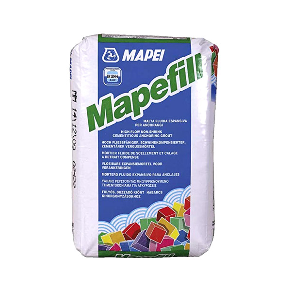 Tekoča cementna malta za sidranje, brez krčenja Mapefill, je za uporabo pripravljena suha malta na osnovi visoko vrednega cementnega veziva, izbranih polnil in specialnih dodatkov z ekspanzijskim delovanjem, ki je še posebej primerna je za natančno sidranje / podlivanje strojev in kovinskih konstrukcij.