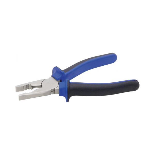 Kombinirane klešče z induktivno kaljenimi ozobljenimi čeljustmi in nedrsečim ergonomskim ročajem iz umetne mase.