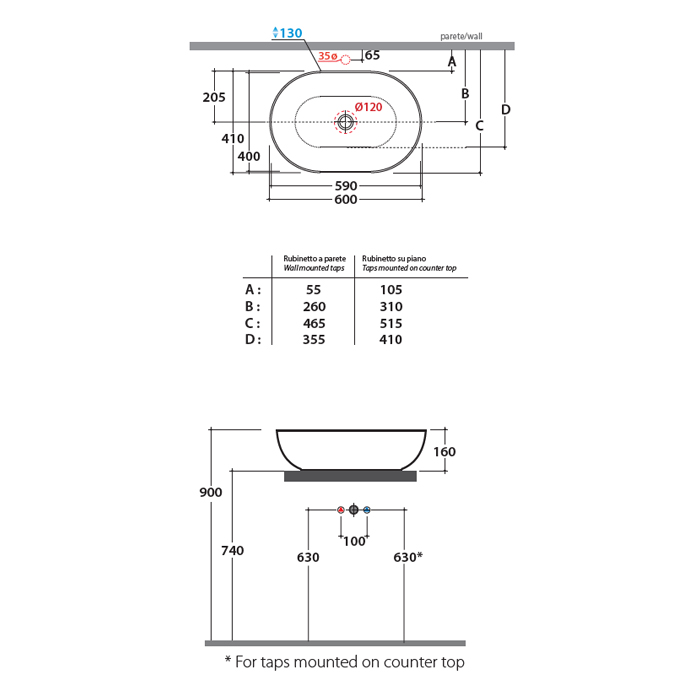 Ovalni nadpultni umivalnik T-Edge, art. B6060.BI Globo.