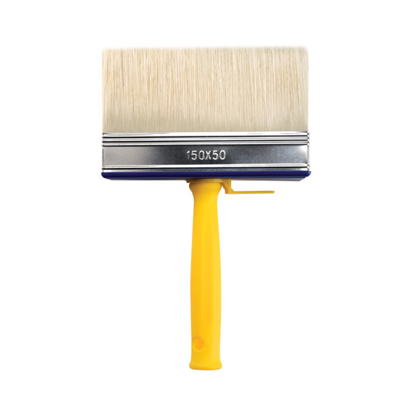 Veliki pleskarski čopič s sintetičnimi ščetinami in plastičnim ročajem, primeren za nanašanje apna.