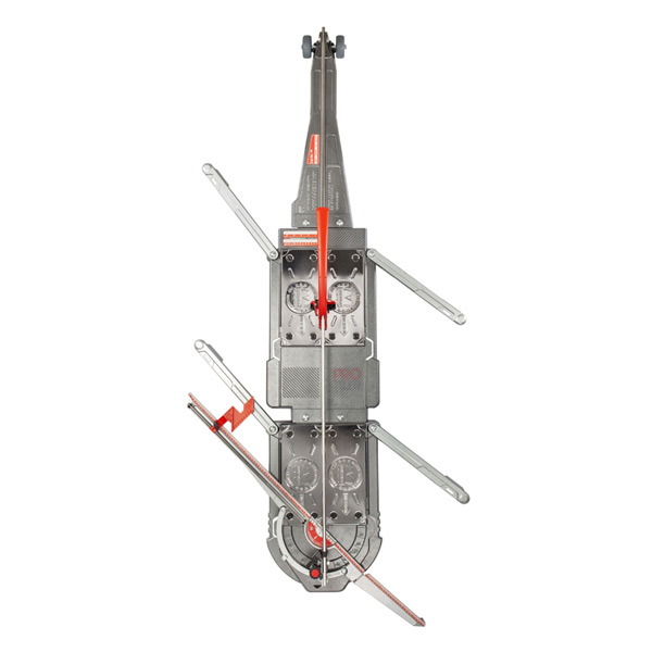 • Razširjena nosilna površina z dvema robustnima aluminijastima kriloma, ki sta popolnoma integrirani v okvir, zagotavlja izboljšano podporo velikim ploščicam z diagonalnimi rezi, saj le-te ne presežejo okvirja rezalnika.