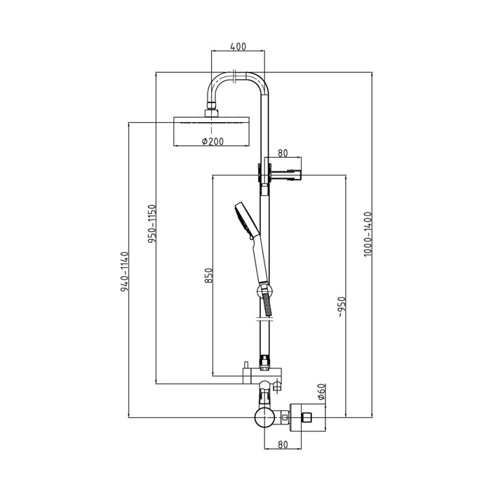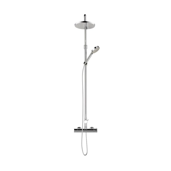 Sestav za prho za stensko montažo s termostatsko mešalno armaturo, okroglo nadglavno prho, konzolo in tuš ročko.